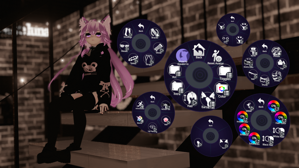 ♡ Toggles: hoodie, top, shorts, switch hair, ears, tail, shoes, glove, braclet, glasses, spikes, straps, pants, patch, piercing