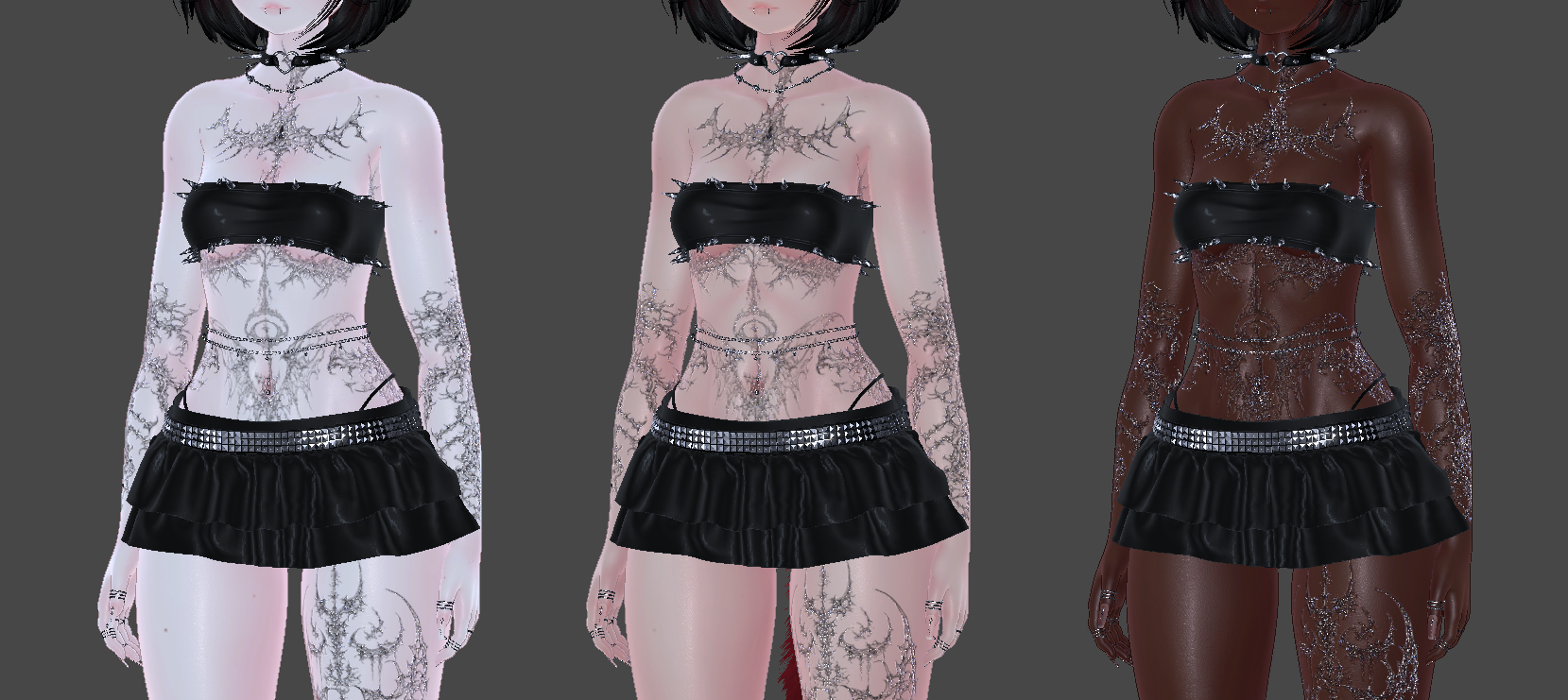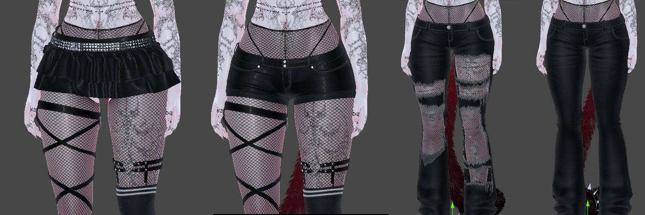 - Toggles: jeans, skirt, short, crop hoodie, hoodie, glasses, sock, tank top, top, garter, leg straps, boots, sneakers, cat tail, tail fluff, harness, fishnet, barbedwire, belt choker, heart, arm belts, arm warmer, shirt, horns, rings, tatto, piercing